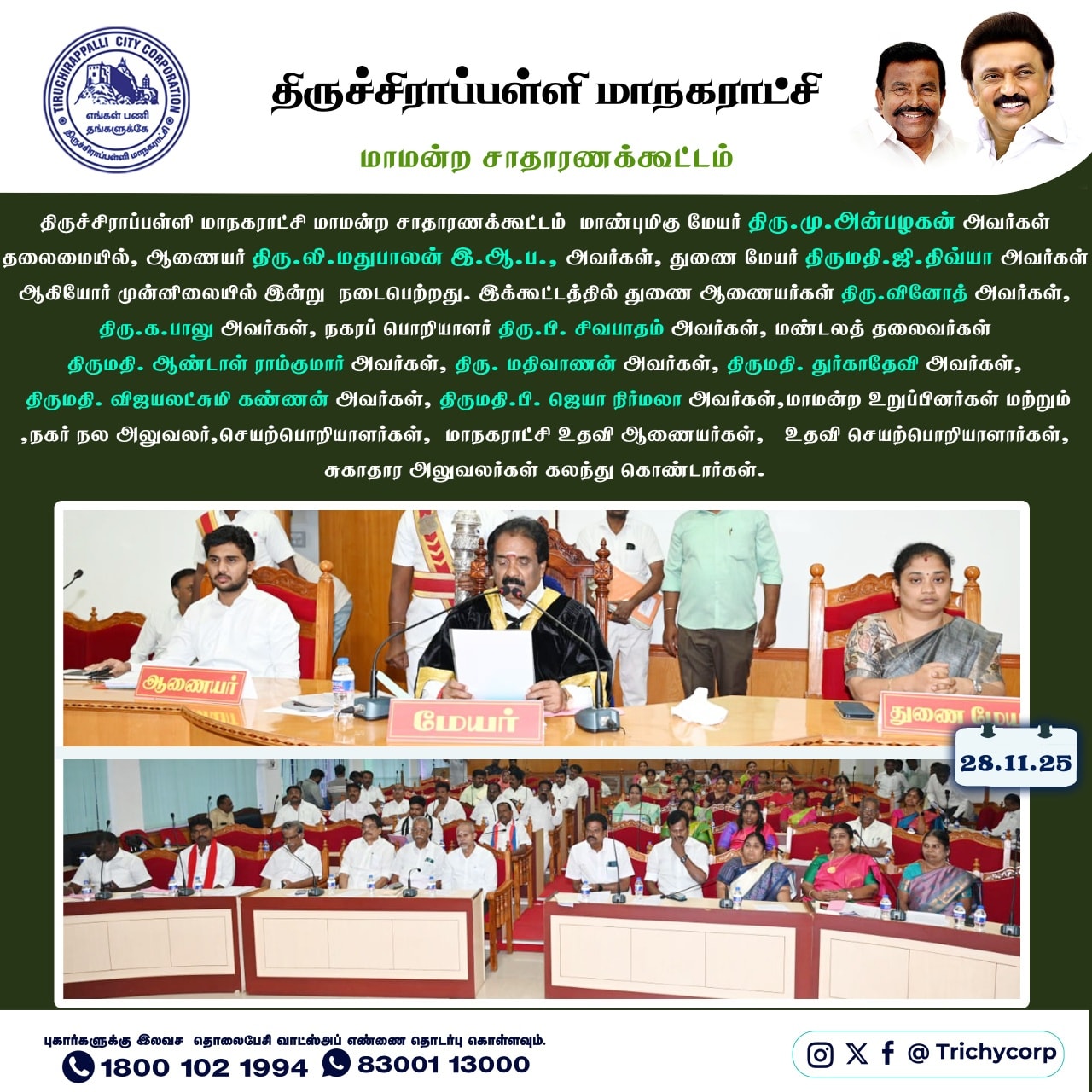 My administration and I are committed to serve you and everyone at the highest level possible. First and foremost is our focus on a healthy and sustainable environment and immediate redressal of public grievances. Our city is known for its uniqueness. We are dedicated to further developing Tiruchirappalli, a Smart City..
